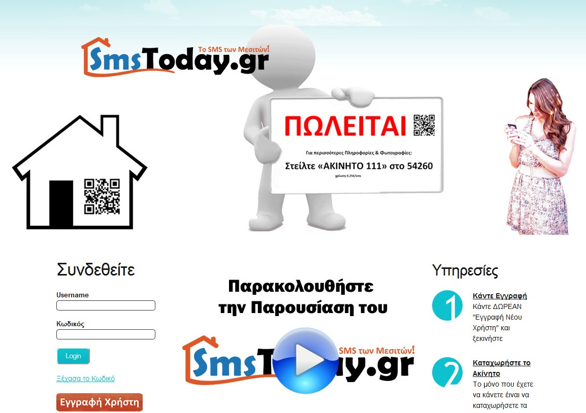 Το SmsToday.gr βοηθάει τον μεσίτη (ή ακόμα και τον απλό ιδιώτη που έχει ένα ακίνητο προς πώληση ή ενοικίαση), να προβάλει και να προωθήσει καλύτερα την επιχείρηση του, κάνοντας χρήση των ακόλουθων τριών μέσων: